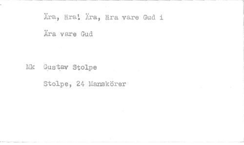 //// Ära, ära'. Ära, ära vare Gud i Ära vare Gud //// Hk Gustav Stolpe //// Stolpe, 24 Manskörer
