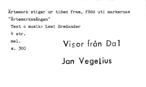 //// Artemark stiger ur tiden fram, född uti markernas "Krtemarkssången" //// Text o musik: Lewi Gredander //// 4 str. //// Visor från Dal //// S. 300 //// Jan VegeHus