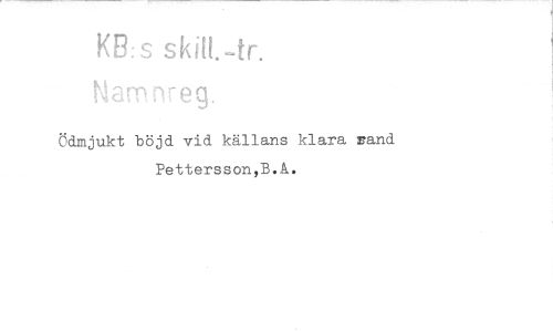//// KB.s sM!.4r. //// Mamnreg. //// Ödmjukt böjd vid källans klara pand Pettersson,B.A.