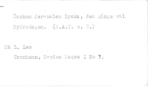 //// Onskom Jerusalem lycka, dem gånge väl Nyårsdagen. (S.A.T. o. 3.) //// k L. Leo //// Cronhamn, Hi.sica Sacra I No 3.