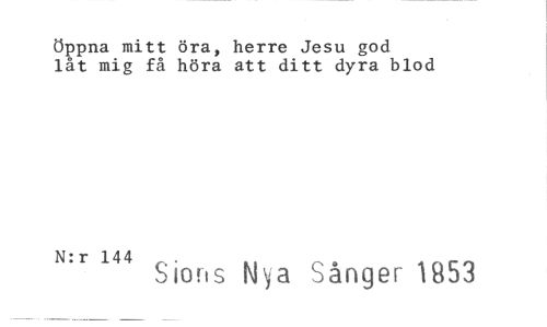 //// Oppna mitt öra, herre Jesu god låt mig få höra att ditt dyra blod //// N:r 144 //// Siorts Nya Sånger 1853