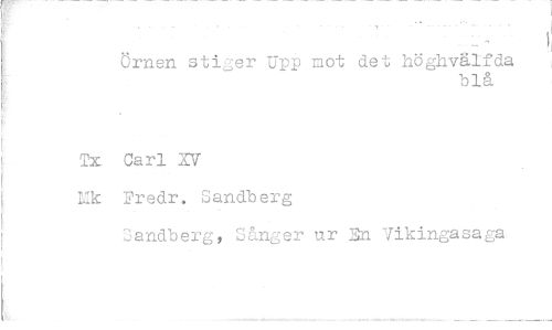 //// Omen stiger Upp not det höghvälfda //// blå //// Tx Carl XV Mk Fredr, Sandberg //// Sandberg, Sånger ur 3n Vikingasaga