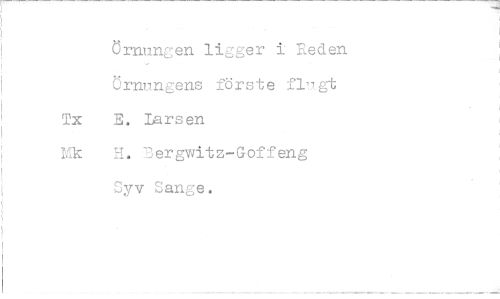 //// Örnungen ligger i Reden Örnungens förste flngt E. Larsen //// H. Bergwitz-Goffeng Syv Sange.