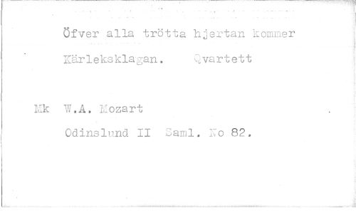 //// Öfver alla trötta hjertan kommer Kärleksklagan. Qvartett //// W.A. Mozart //// Odinslund II Sami. No 82.