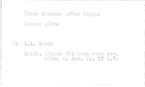 //// Ofver lundens gröna toppar //// Hannas gåfva //// k L.A. Lundh //// Lundh, Oånger för barn utan acc. //// äfven m. Acc. Op. 12 H.2,