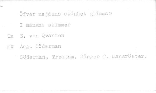 //// Ofver nejdens skönhet glimmar I månans skimmer 3. von Qvanten Aug. Söderman //// Söderman, Trestäm. Sånger f. Liansröster.
