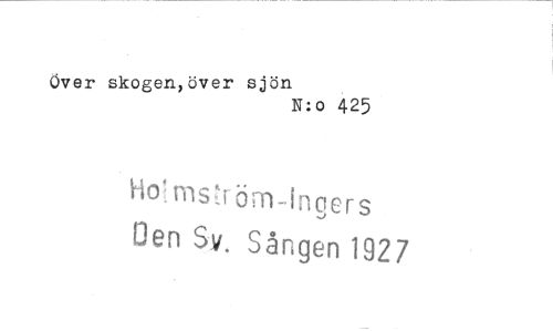 //// Over skogen,över sjön //// N:o 425 //// Ho-nis^föm-ingers Oen Sy. Sången 1927