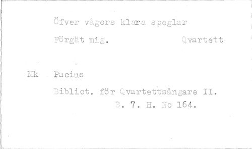 //// Ofver vågors klara speglar //// Förgät mig. Qvartett //// Pacins //// 3ibliot. för Qvartettsångare II.