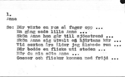 1. //// /«sa //// Se: Mr växte ©s ros så fager opp .«• m gång seät lilla Anna -. //// SkSo åana hon går till sjöestrenå .. Skaa Anna alg utvalt eft hjärtana kär Viå sexton års ålder Jag älskade r©n Dör bodde en fl loka «ti staden ... Kär 5« sin söta Anna ... //// Gossar och filekor komen seå fröjd