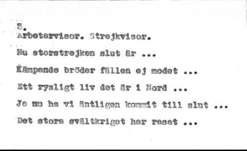 ¿rbetarnsör. stre.jkvisor. //// Mu storstrejken slut Ur ... tåmpenda bräder dillen ©J toodet ... Stt rysligt liv dat Sr 1 Hord ... //// au ha v% Sntllgen koasit till slut öet store svältkriget hor raset ...