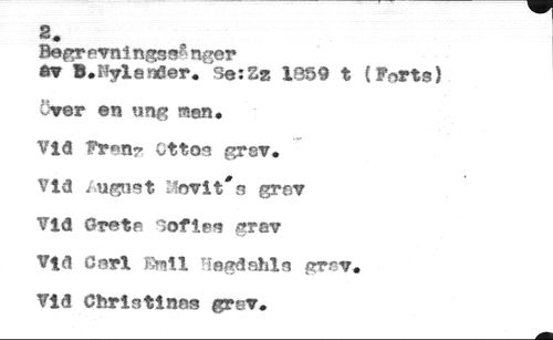 2. //// Be^rpvningss?nger //// *? B.Hyienöer. 3e:Sz IQS9 t (Ports) Över en un& man. //// Vid Prim? Ottos grsv* //// Vid ¿ugnst Stovlt#s grov //// Vid Greta lofias grsv //// Vid Carl Emil Hsgdshla grav. //// Vid Christinas gror.