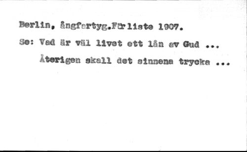 Berlin, ångfertyg.FSrlist® 1907. //// S©i Veâ är väl livat ett lån ev Gud «. Återigen skall âet sinnena trycks