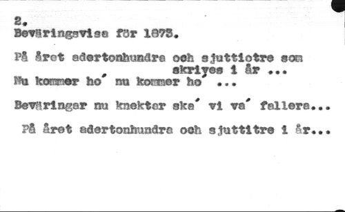 2. //// Bevåringsvlse för 1873, //// På året aécrtoahusára och sjuttiotre sex?» //// akrly©« t år ... //// !fu keener ho nu komer ho ... //// Beröringar nu knektar ske* vi va* fellera //// På Sret aâertonhunâra och sjuttitre 1 år