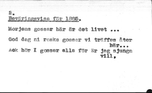 S. //// geySrjgggvlse för 1885. //// Morjens gossar här år det livet ... //// God deg ni raska gossar vi träffes Ster //// hir,.. //// Aek hör I gossar alle för fir 3eg sjungn //// vill.
