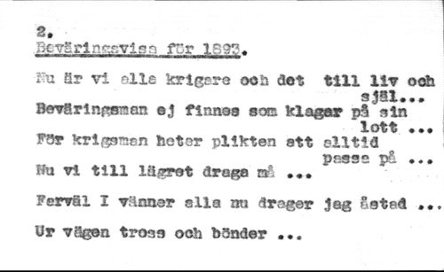 Bc^xiggssign rzv //// fm är vi nlle krigare ooii det till liv o oh //// s Jltl • • • //// Baväringsrsan ej finnas soss klagar p3 sin //// lott ••• //// F3r krlgsraan feeter plikten ett alltid //// passé pd ... //// Hu vi till lägrat draga aå //// Fervfil I viinner sila nu drager Jag åsted •• //// Ur vägan troaa ooh bSnder ...