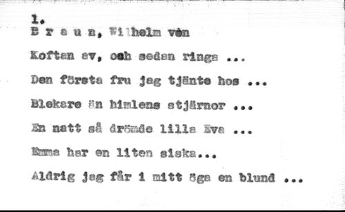 Ef eas, feelm v$n Höften ev, o»b seåen rlnge ... //// Ben fSrsta fru jeg tjånte ho» ... Bleker© Rn himlen» stjärnor ••• //// Ib natt så droRöe lille Iva ... //// Wmm fe©r ©n liten si ske... //// åldrig Jeg får i mitt «gn en blund *