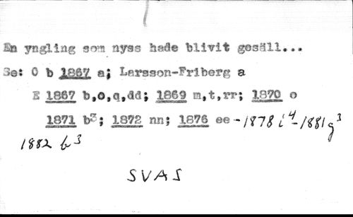 ( //// Eia yngling som nyss heâe blivit gesäll.*. //// 5qî 0 b 1867 ®; Lersson-Friberg a //// E 1867 b,Opq,ddJ 1869 1870 o //// 1871 t£j 1872 nm$ 1876 ee - /f 7/ / 1 /^ //// /SVA I