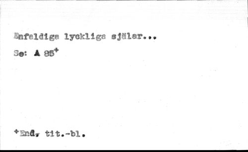 Sßfeldig* lycklige sjåler. 3®: À 85* //// ?Sn«» tît.-bl.