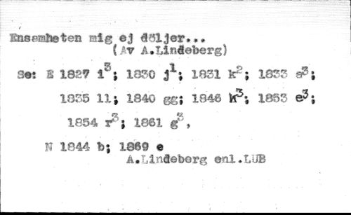 I&ssmheten sig ej döljer.., //// (AT A.Llnieberg) //// SK B 1827 T *, 1030 j1; 1051 k2; 1855 //// 1055 11; 1840 gg; 1946 H3; 1855 //// 1854 r ; 1061. //// H 1844 b; I860 e //// à .L1 nioberg onl.tUB //// % %