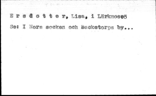 Srsåötter, Lisa* i Wtkmöseö Se: 1 ¿lore soeben oofe Saekstorps by*.