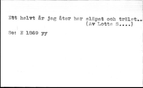 1 //// Stt halvt år jag åter har släpat och trälåt.* //// (åv Lotta //// Se: 1 1869 jy