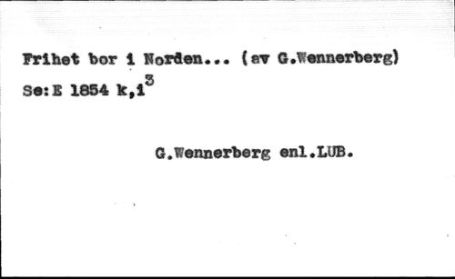 Frihet hor 1 Norton... {©? G.Wennerber g) Se:S 1854 k,iS //// G.wennerberg enl.LOB