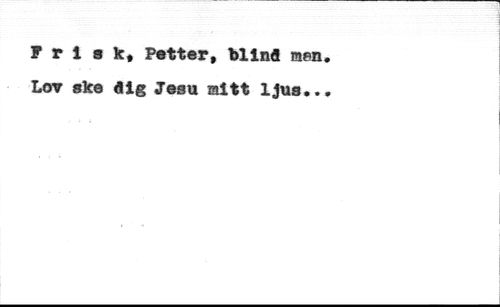Frisk* Petter, blind men. Lov ske åig Jesu raitt ljus*..
