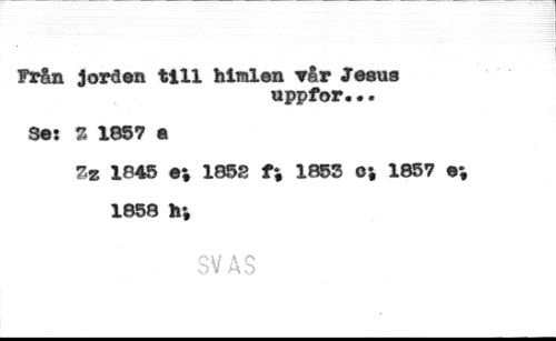 Från Jorden till himlen vår Jesus //// uppfor* *. //// Se: % 1857 e //// 7-2 1845 ev 1852 fv 1853 o; 1857 ev 1858 h-, //// SVAS