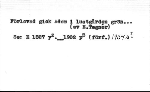 Förlorad gick Adas i lustgården grön... //// (er E.Tegner) //// Se: K 182? yZ.^lQOZ p3 (förf.) Möi A -