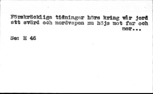Förskräckligs tidningar hörs kring vår Jorå att svärd ooh mordvapen nu hc5j3 mot far ooh //// mor... //// Se: H 46