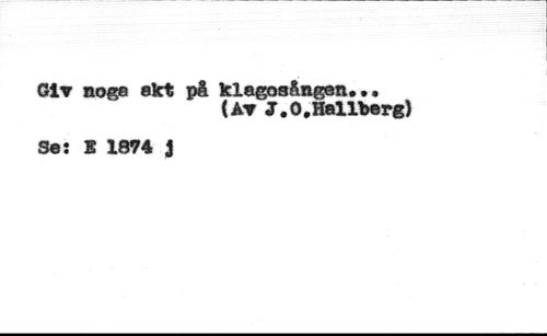Gít noge akt pâ klagosången... //// {At J.0,Hallberg) //// Se: S 1874 J