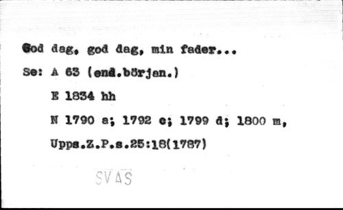 Sod dag, god dag, rain fader... //// S«: A 63 (end.början.) //// E 1834 hh //// N 1790 a; 1792 0} 1799 d*f 1800 Uppa.Z.P,*.25:18(1787)