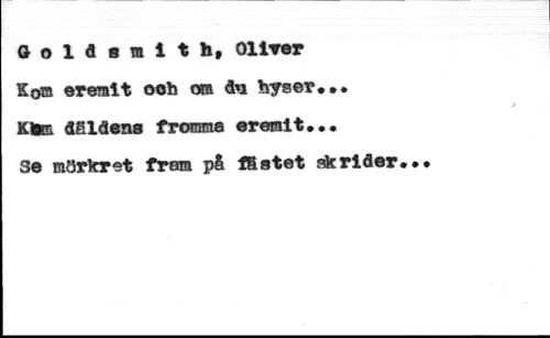 Goldsmith, Olirer //// Eora eremit ooh onv d*i hyser* • • //// Kten dSldens fromma eremit... //// Se mörkret fram pS f&atet skrider.