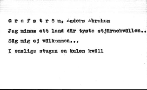 GrafstrSm, j&nders /»brahwa //// Jag »Inns att land där tysta stjämekvällen. //// Säg mig ©j välk-tamen... //// I ensliga stugan en kulen kväll