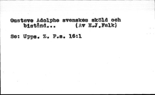 Gusteve Adolph© svenskes sköld och bistånd*•. (Ar S.J.Palk) //// Se: Uppe* Z. P.s, lft:l