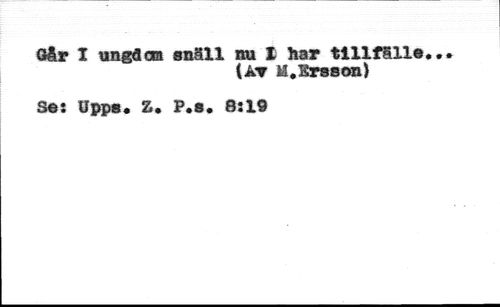 Oår I ungd cm snäll nu l har tillfälle, //// (Ar M.Krsson) //// Se: Upps. Z* P.s. 8:19