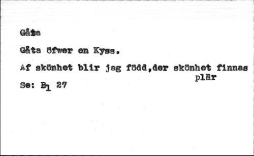 Gåta //// Gåta öfwer en Kyss, //// Af skönhet bitr jag födå,der skönhet finnas //// Pl8r //// Se: 27