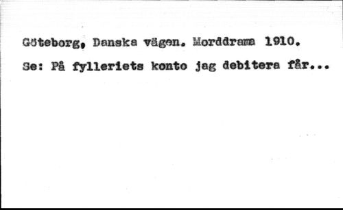 Göteborg» Danska vägen, Morddrai® 19X0, Sas På fylleriets konto jag debitera får.
