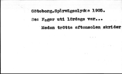 Göteborg.Spårrägsolyck a 1905 • //// Sst Fager uti lördags Tar**» //// Medan trötta aftonsolen skrider