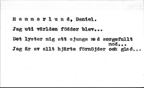 Hammarlund, Daniel * //// Jag uti världen födder blev... //// Det lyster mig att sjunga red sorgefullt //// mod.,* //// Jag fir av allt hjgrta fömdjder och gled