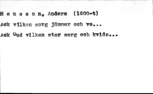 H e n a 9 o n, Anders (1600-t) //// Aek vilken sorg jäwner och ve... //// Aek <*ud vilken stor sorg ooh kvid®.