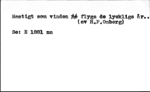 Hastigt som ?inäon M flyga 4« lyckliga år, //// (ev H.P,Omberg} //// Se: E 1881 nn