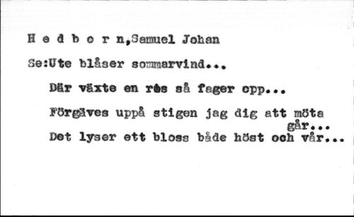 H e d b o r nt3eranel Johan //// Seillte blåser sommarvind* .* //// Dår vårte en rés så fager opp..* //// Förgäves uppå stigen jag dig att raöta //// går.. //// Det lyaer ett bloss både höst ooh vår