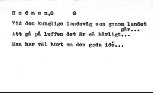 H e d m a n,G G //// vld den kunglig landsvig a aa genom landet Att gå på luffen det Sr så härligt,,.* //// Man har ?§! hört am den goda idé...