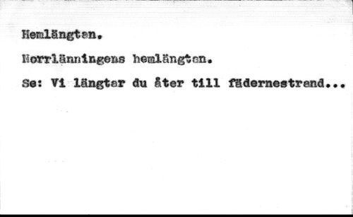 Hemlängtan, //// norrlänningens hemlängtan. //// Soï VI längtar du Äter till fädernestrand.
