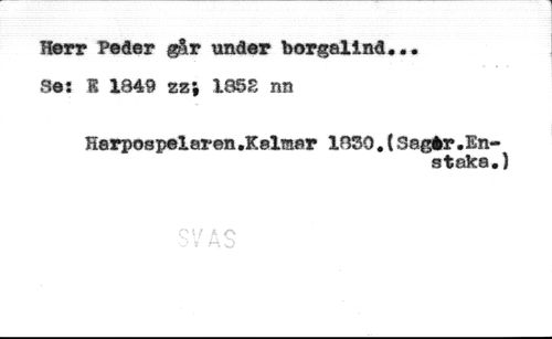 Herr Peder g&r under borgalind... //// Se: 1 1849 zz'9 135£ nn //// Herpospelaren .Kalmar 1830.(3agir.Enst oks.)