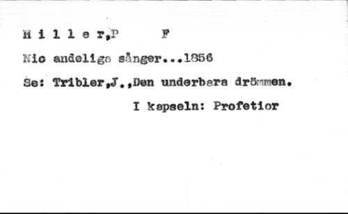 Hille rtP ? //// Klo andel lga sånger...1B56 //// Sei Tribler,J*,Oen underbara drönmen. //// I kapselni Profetior