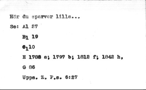 Hör öu s parrar lilla.,. //// Se: Al 27 Bl 19 CjlQ //// 1 170® a; 1797 b; 1812 f; 1842 h, Gr 86 //// Upps. Z, P.8. 6ï27
