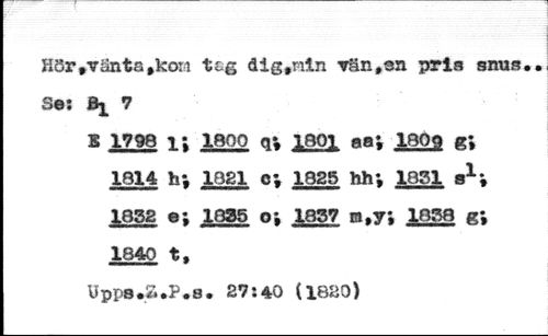 K8r*vänt£*ko!i teg dig,nln Tän^sa pria anas.., S«ï % 7 //// E 1798 i; 1800 q% 2SSI aa^ 180s g; //// 1814 h*, 1821 c; 1825 hh; 1831 s1*, //// 1832 ®» 1835 oj 1837 b,y; 1888 g*, //// 1840 t, //// Upps.Ü.P.s. 27:40 (1820)