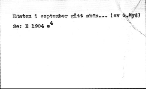 HSsten i 8«ptenfc«r rått skön..« So: E 1904 e4 //// (av Q.tofå) //// X